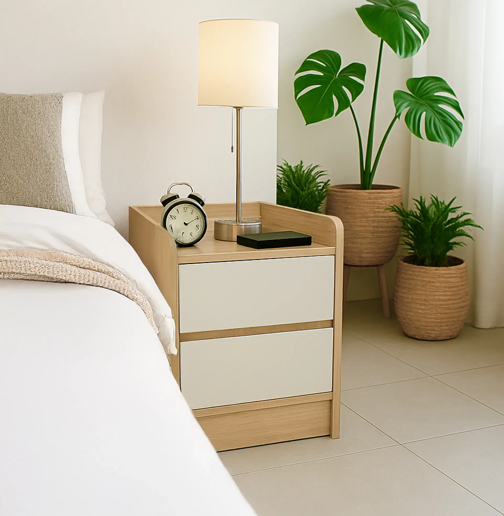 Optimiza tu espacio con la mesa de noche Canis, confeccionada con detalles de alta calidad para un diseño funcional y elegante. Este mueble único combina practicidad con estilo distintivo. Sus compartimentos ofrecen espacio práctico y moderno, adaptándose perfectamente a tus necesidades nocturnas.