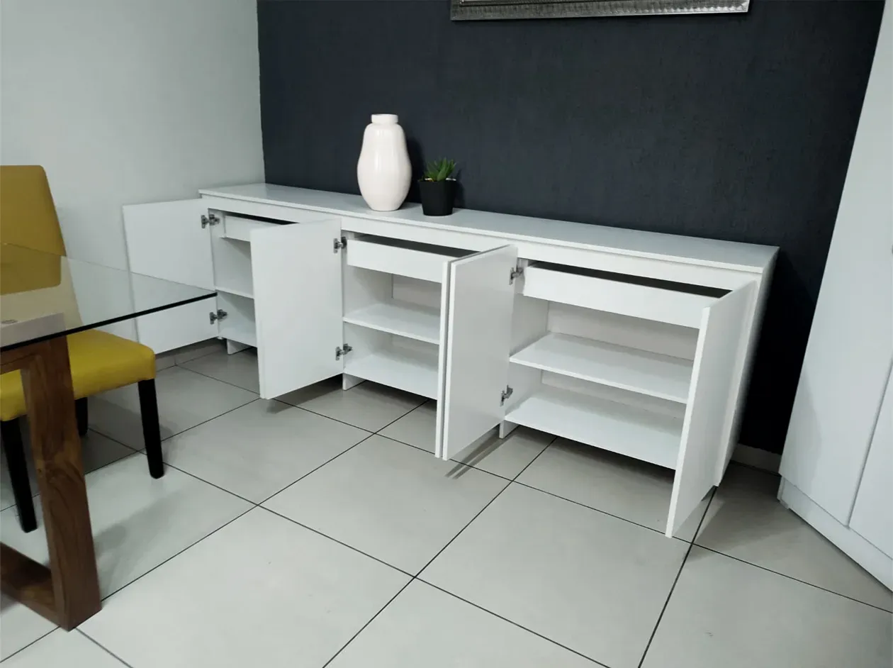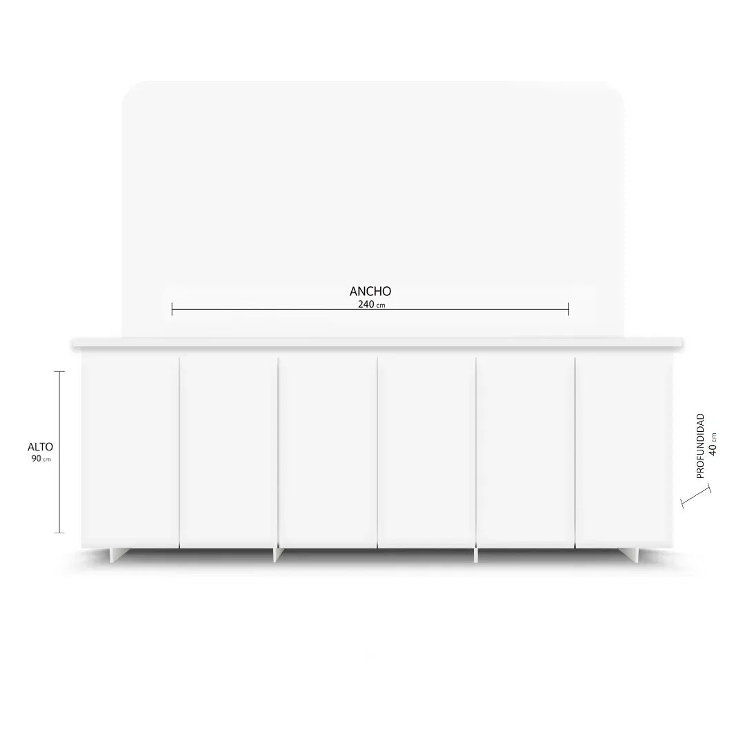 "Colosa es una bufetera imponente y sofisticada, diseñada para destacar en cualquier espacio. Con su amplio tamaño, ofrece una generosa capacidad de almacenamiento, ideal para organizar y exhibir con elegancia tus vajillas y utensilios. Perfecta para quienes buscan un mueble funcional y con gran pre...